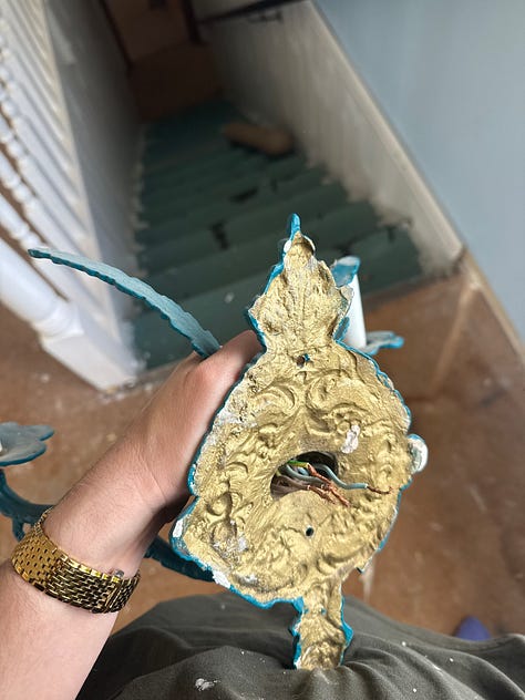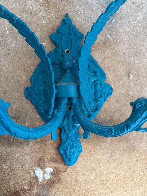 Now please, please explain to me why anyone would buy beautiful, solid brass sconces like this, and paint them blue. Like, honestly. WHO. WHY.
