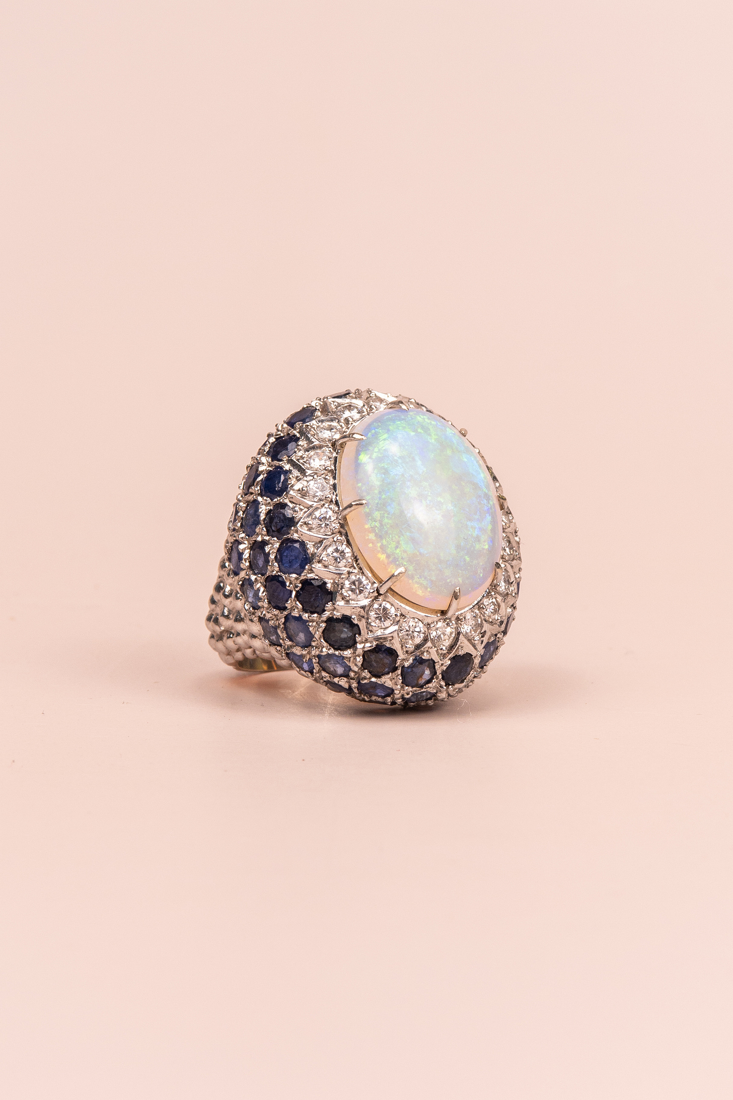 This mammoth Coober Pedy opal, with over a carat of diamonds and 11 carats of sapphires. I have never in all my life seen anything like it. It’s huge, it’s bold and it commands attention. I am simply, obsessed. 14ct, $10,250aud