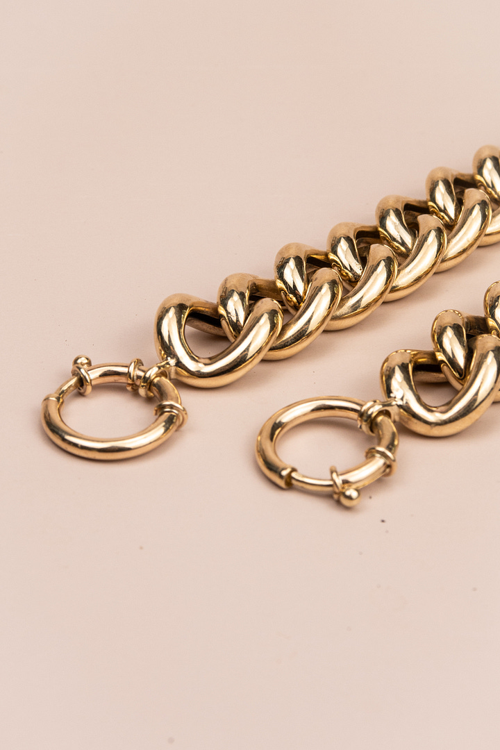 TWO perfect puffy curb bracelets. The ultimate statement piece. I remember years ago, I saw a woman wearing one this size and I swear I stared at her the whole event. I was enamoured by her. Who was this kind of woman who not only can find this needle in a haystack size bracelet, but then to wear it with such cool, casual elegance. I wanted nothing more than to be her when I grew up. Big links, big clasp. 9ct, $4950aud