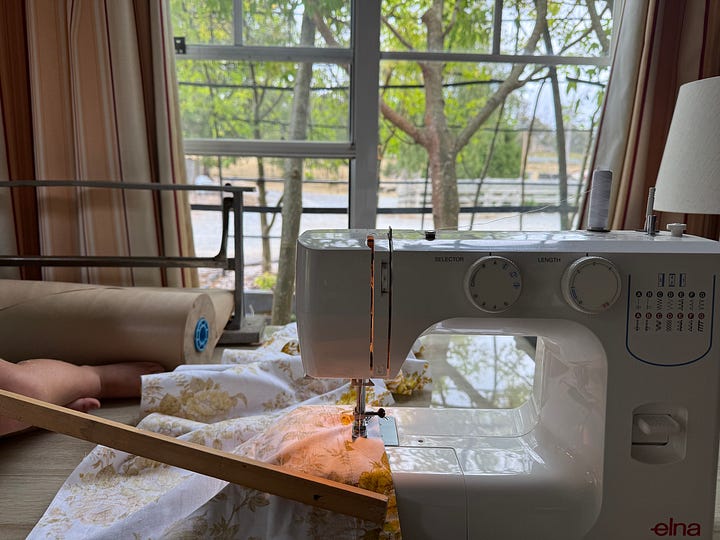 I decided to dip my toe, once again, into sewing a curtain. I absolutely learned from my mistake last time and made sure I cut the right length so that it would sit as a proper curtain.