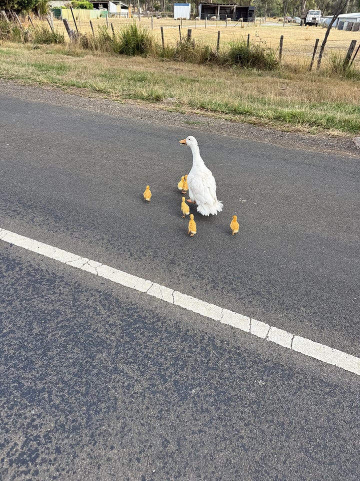 On the way home I had to make a quick little stop and usher this sweet little family back across the road and through the fence to their property. I will admit, I was mildly (VERY) tempted to put a little duckling (or two) in my pocket and take it home. But of course, I would never. But the thought did cross my mind.