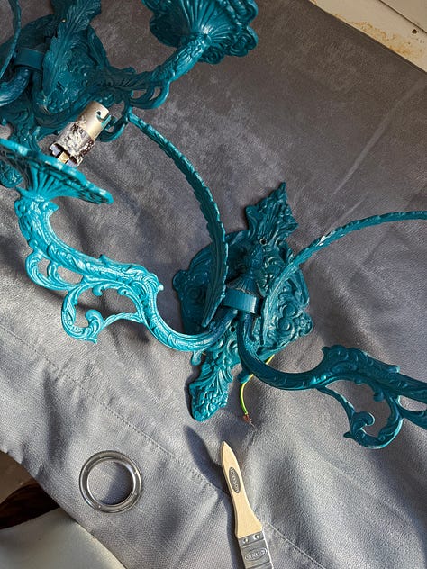 My sparky says he is ‘fairly sure’ he can re-wire them. And I really hope he can, otherwise I might just have to put some candles in them and have some really fancy candle sconces on the wall.
