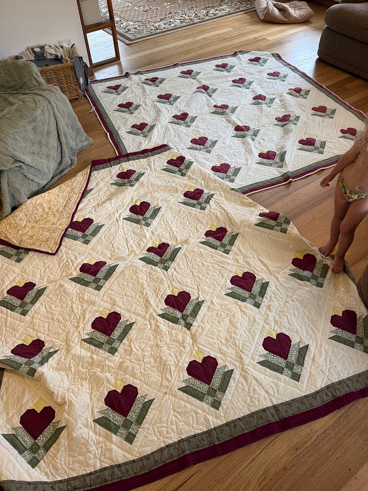 TWO quilts at an op shop?? For $15 each!? Only in Tasmania! I didn’t even check them over in the shop, just put them in my cart and bought them straight away. Perfect couch blankets or picnic rugs or anything! They are all totally hand stitched too!